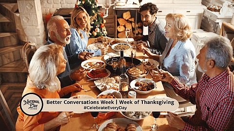 In 2002, Loren Ekroth founded Better Conversations Week the week of Thanksgiving to promote enjoyable and meaningful conversations between friends and family.
