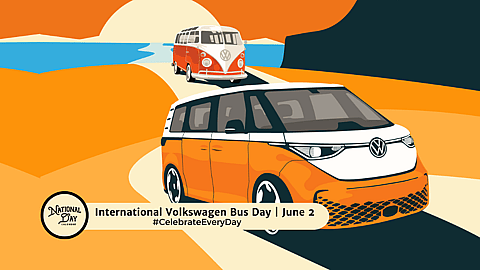 National Day Calendar and Volkswagen of America began a collaboration to establish International Volkswagen Bus Day to be celebrated each year on June 2. This International Day celebrates the iconic Volkswagen Bus and the new ID. Buzz, bringing smiles to the faces of generations, past, present, future.