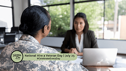 In 2017, Registrar at National Day Calendar proclaimed National Hire a Veteran Day to be observed on the 25th day of July annually.