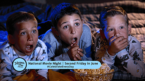 Pop some popcorn, grab a blanket and your favorite buddy, put away the cell phones and tablets, and then queue up a string of movies for a fun night of entertainment. National Movie Night on the second Friday in June encourages us to start (or restart) a tradition of movie nights with friends and family.