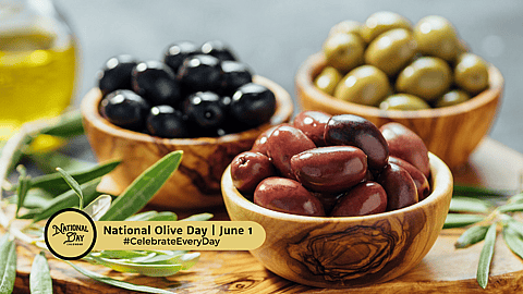 National Olive Day falls on June 1st on the National Day Calendar to celebrate one of the world's oldest fruits. The olive is part of a traditional meze/tapas culinary experience that brings families and friends around the table.