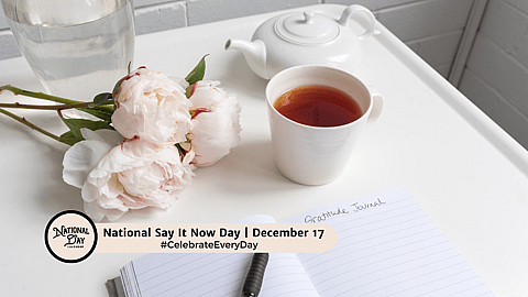 December 17 is National Say It Now Day as a day to tell friends and loved ones how important they are to us by expressing gratitude for all the ways they’ve impacted our lives. With the year winding down, it’s the perfect time to show gratitude to those around us for all they have done during the year.