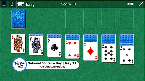 Microsoft founded National Solitaire Day on May 22, 2018, to celebrate one of the most played computer games. In 2015, Microsoft Solitaire celebrated its 25th anniversary. National Solitaire Day continues that celebration with an annual event recognizing the contributions Microsoft Solitaire has provided in the computer age of the game.